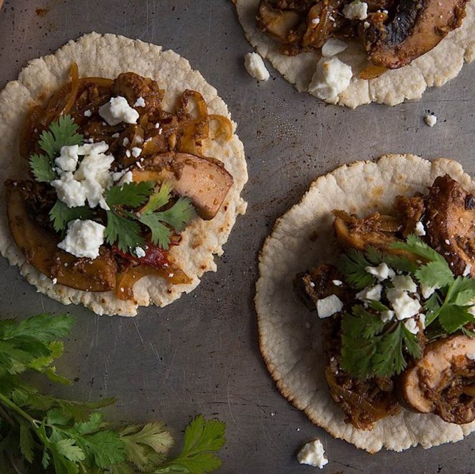 .Mexican mushroom tacos sautéed with garlic, onion and aromatic spices, finished with a touch of feta cheese. Full of flavour and beautifully balanced, these tacos are a delicious option for vegetarians and anyone looking for something comforting and satisfying.