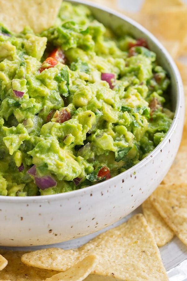 Guacamole con totopos, is a classic Mexican appetizer, is a creamy avocados, tomatoes onion, coriander and lemon, it’s often served with totopos, which are crispy tortillas chips.